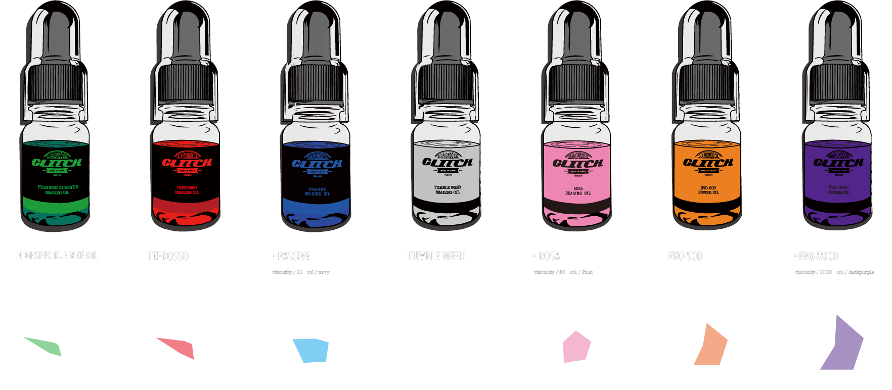 PASSIVE made by adding a special lubricant and an antirust to the Glitch Oil-specific base oil to strengthen the lubricating performance and rust prevention property. This is an all-round oil that has top-level resistance to stand hard wear, improved lubricating and rotational performance to prevent abrasion to the maximum extent possible, and rust proofing property to prevent rust by forming rust-proof coating.